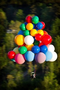 Here’s a great time-lapse video of Jonathan Trappe’s cluster balloon flight of April 2010. Jonathan set the world record for a cluster-balloon flight endurance, staying airborne for over 14 hours. He flew for 109 miles over central North Carolina.