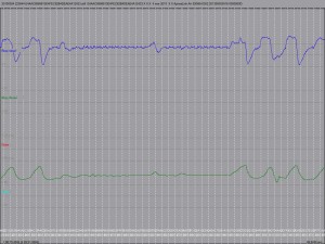 But that wasn’t the full story. Becoming more adept at using EDFbrowser, I zoomed in and the picture changed. It seems the lines weren’t as even as I thought. Scrolling the cursor, my eyes widened at a gap of 30 seconds where I wasn’t breathing.