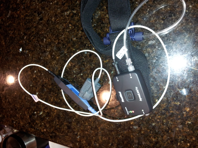 At a follow-up trip to my neurologist I mentioned catching myself not breathing occasionally at night, at which point he ordered up a sleep study. Unlike the previous sleep studies I’d done several years ago, this was a home sleep study. FedEx delivered a sleep study kit to my door Wednesday with instructions on how to use it.